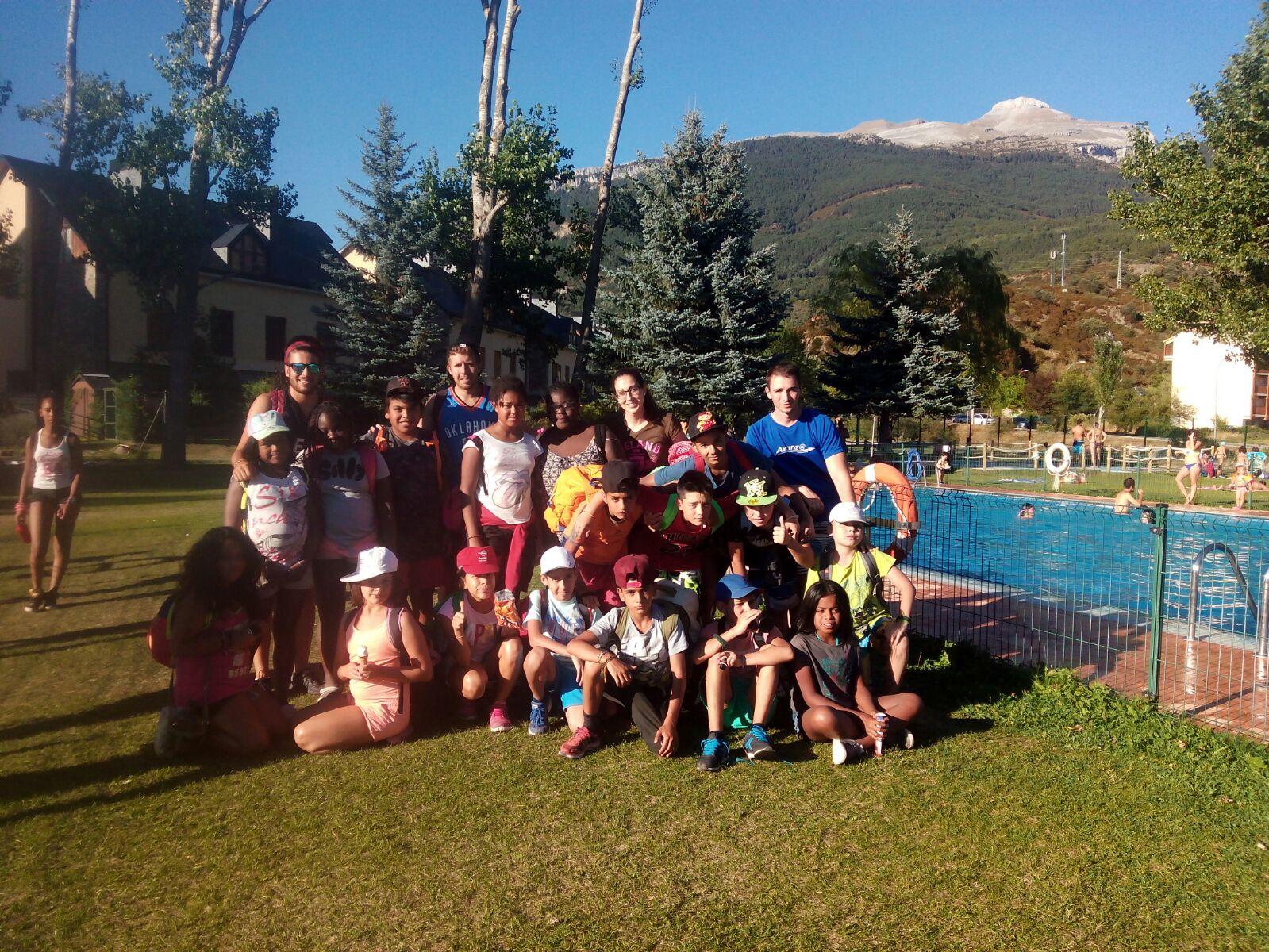 Villanúa a toda prisa para no perder ni un momento en la piscina. Allí nos