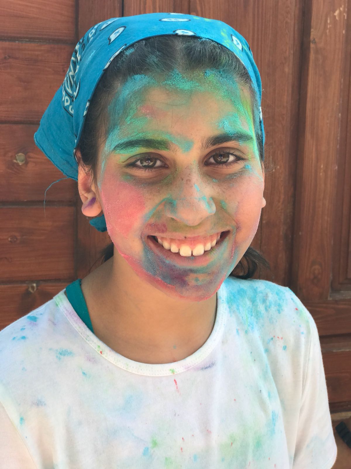 cada una de ellas se les iba manchando de polvos Holi y la actividad ha acabado