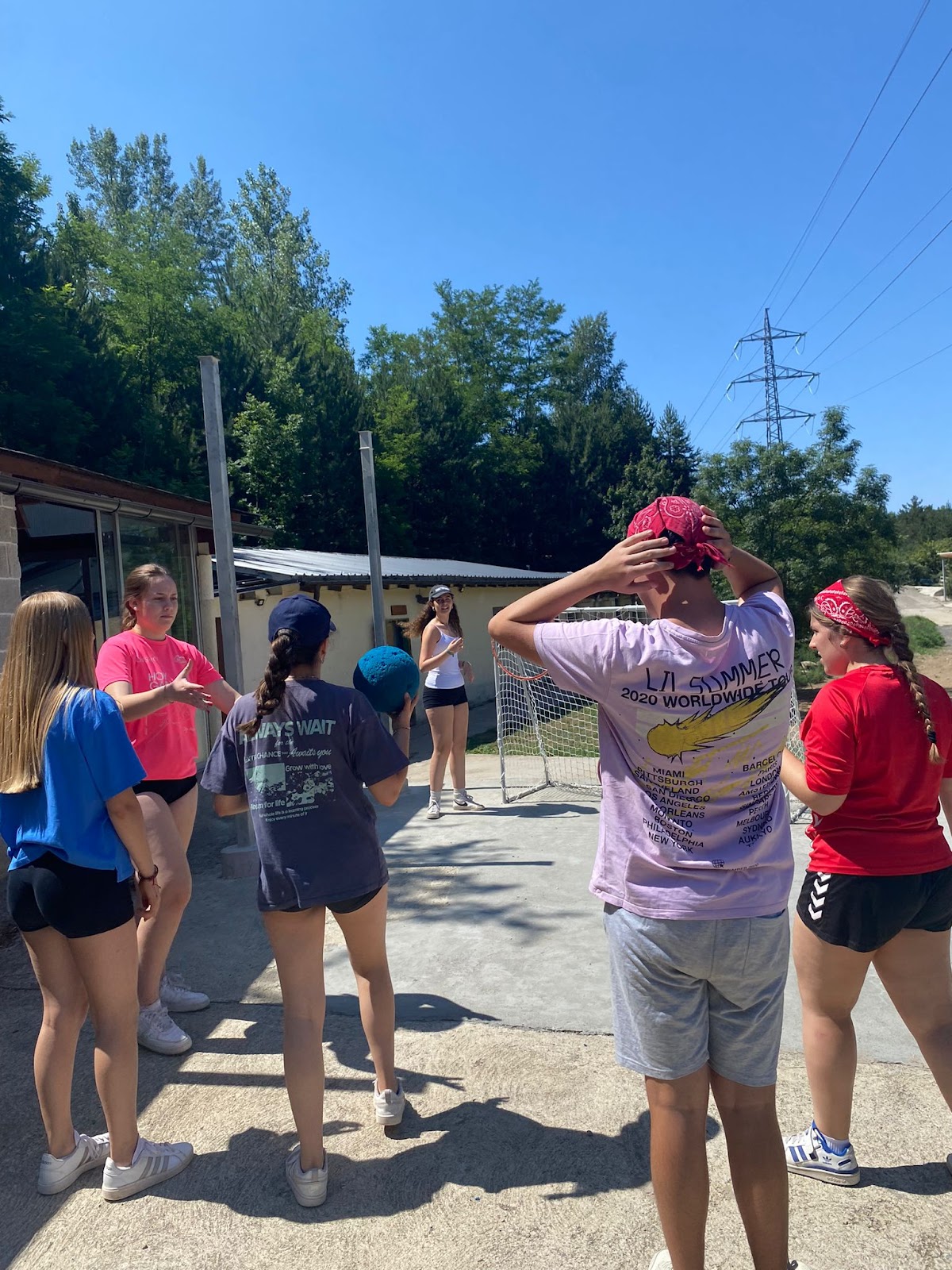 Después de comer y de hacer algunos servicios, los peques hicieron varios juegos de pelota como la pelota mágica, datchball... El grupo de median@s, hicieron un taller de "Hama beads" y se ducharon. Y los mayores jugaron a la metodología del reto, donde en competición de 1 vs 1, se iban retando a diferentes pruebas con el fin de conseguir puntos para seleccionar su distrito.