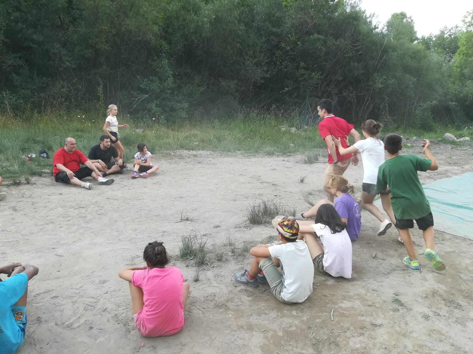 Para finalizar han jugado un balón prisionero contra los monis intentando superar los 500 puntos y así ganarles.